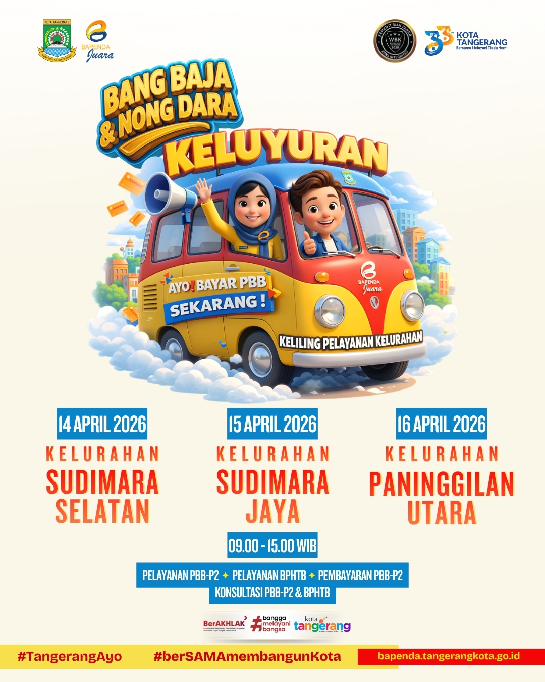 | Description Agenda | Badan Pendapatan Daerah (Bapenda) terus berinovasi dalam meningkatkan kualitas pelayanan kepada masyarakat melalui program “Bang Baja Nong Dara Keluyuran”, yaitu layanan jemput bola yang dilaksanakan langsung ke kelurahan-kelurahan. Program ini merupakan wujud komitmen Bapenda untuk menghadirkan pelayanan yang lebih dekat, mudah, dan cepat bagi masyarakat, khususnya dalam hal administrasi dan informasi perpajakan daerah seperti PBB-P2 dan BPHTB. Melalui kegiatan ini, masyarakat dapat langsung berkonsultasi, melakukan pembaruan data objek pajak, serta memperoleh berbagai informasi tanpa harus datang ke kantor Bapenda. Dengan pendekatan proaktif ke wilayah kelurahan, diharapkan program “Bang Baja Nong Dara Keluyuran” mampu meningkatkan kesadaran dan kepatuhan masyarakat dalam memenuhi kewajiban perpajakan. Selain itu, kegiatan ini juga menjadi sarana mempererat hubungan antara pemerintah daerah dengan masyarakat, sekaligus mendukung optimalisasi penerimaan daerah guna pembangunan yang berkelanjutan. |