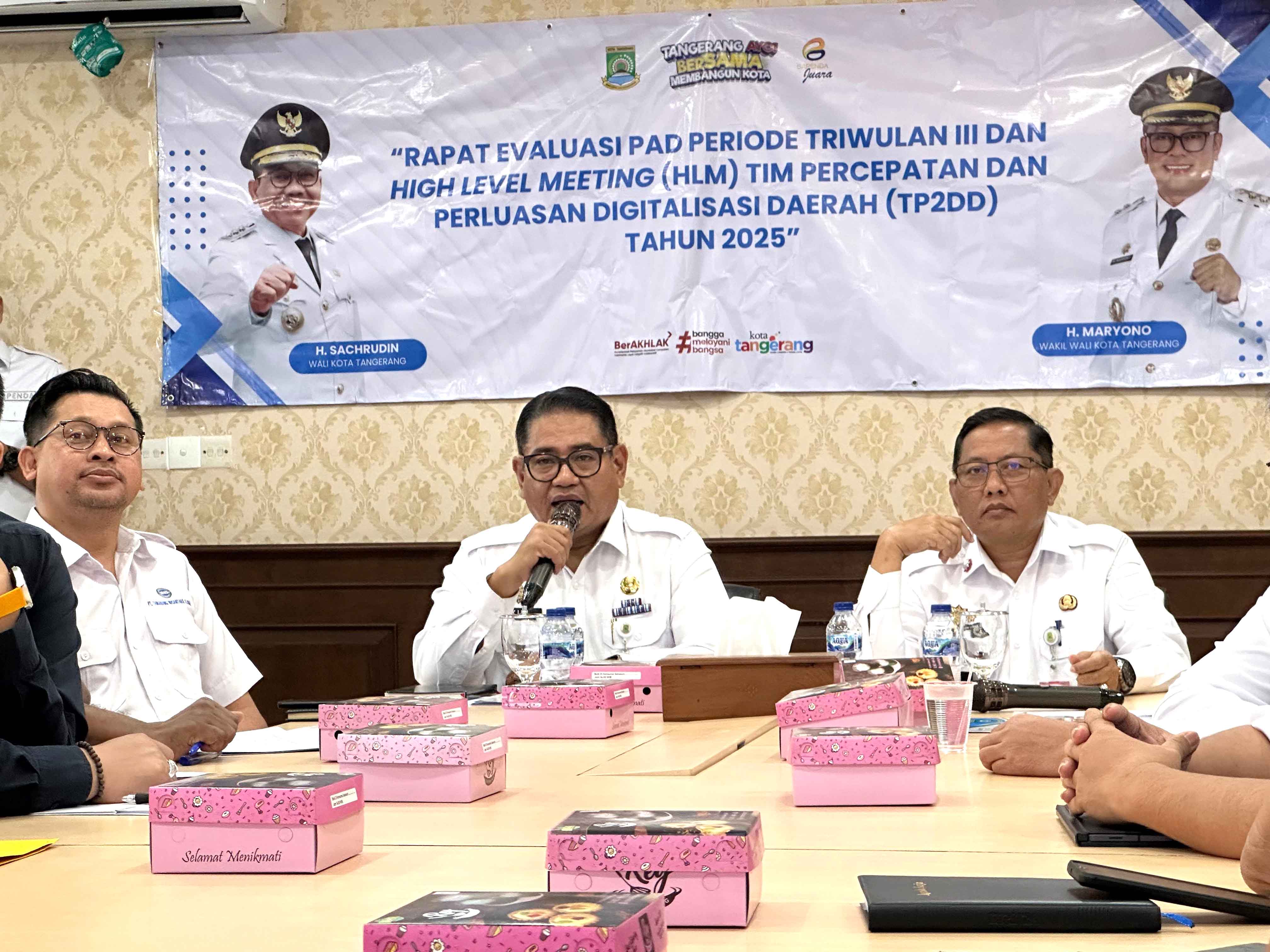 Pemerintah Kota Tangerang terus memperkuat transformasi digital di sektor layanan publik. Komitmen itu kembali ditegaskan melalui kegiatan Evaluasi Kinerja Triwulan III Pengelola PAD yang dirangkaikan dengan High Level Meeting Tim Percepatan dan Perluasan Digitalisasi Daerah (TP2DD), Rabu siang (19/11/2025).