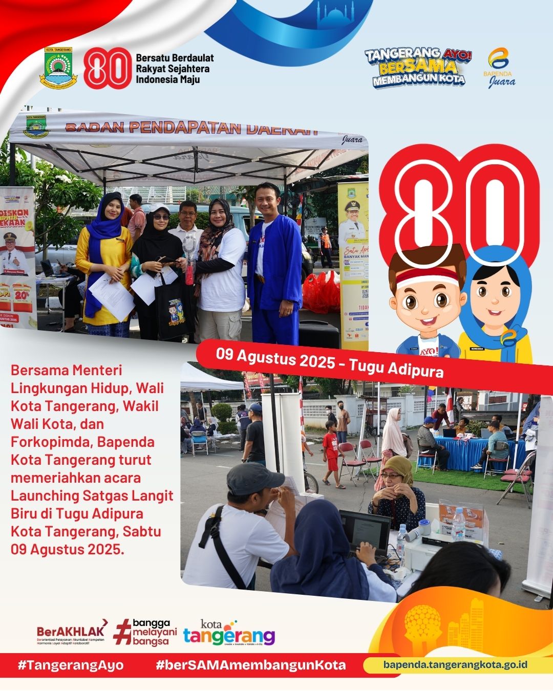 Bersama Menteri Lingkungan Hidup, Wali Kota Tangerang, Wakil Wali Kota, dan Forkopimda, Bapenda Kota Tangerang turut memeriahkan acara Launching Satgas Langit Biru di Tugu Adipura Kota Tangerang, Sabtu 09 Agustus 2025. ????