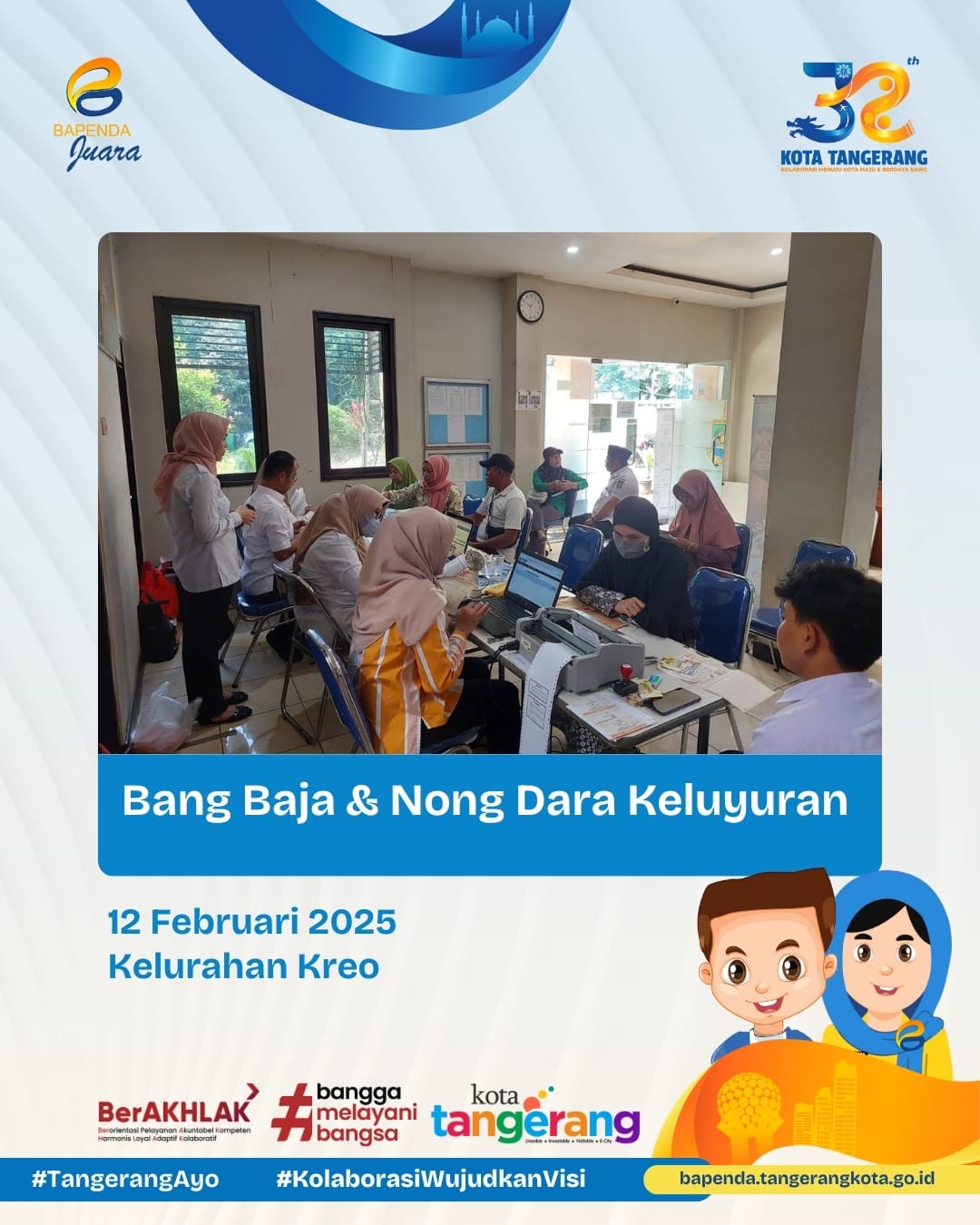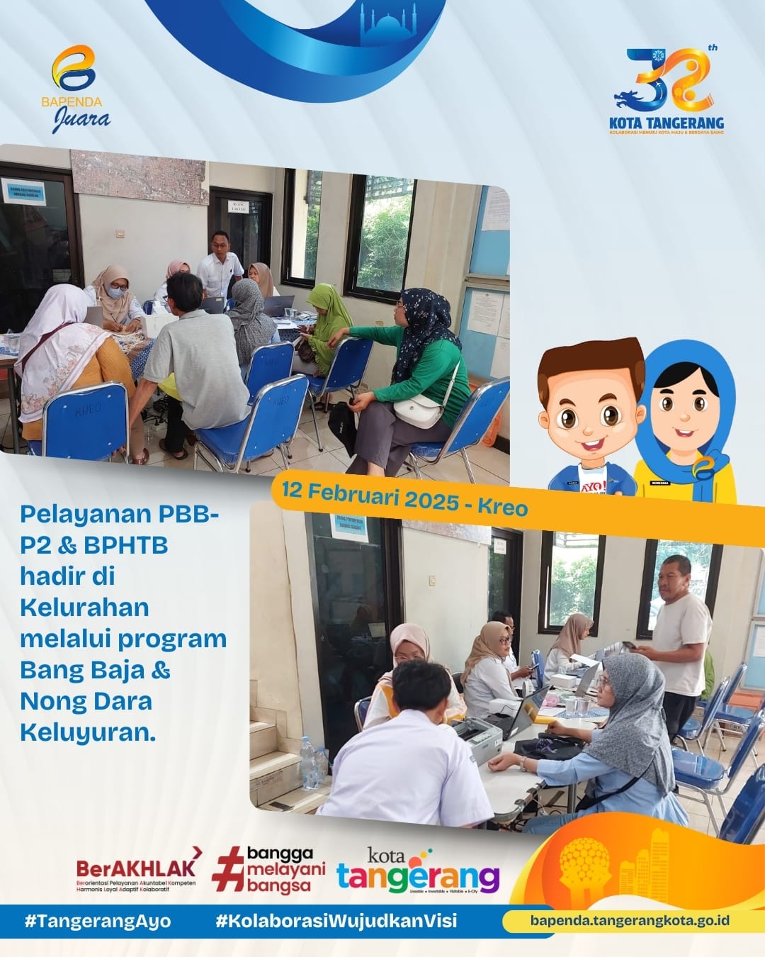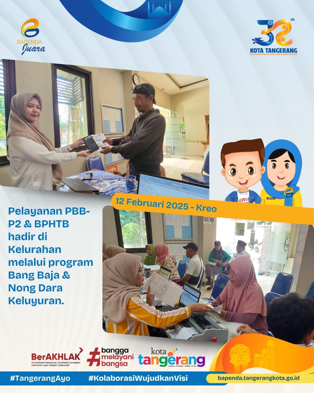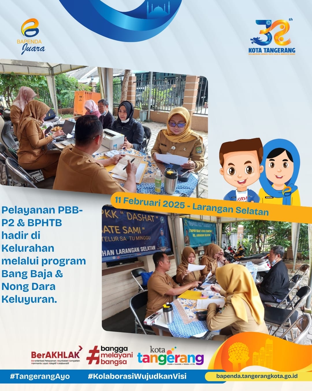 Percepat dan permudah masyarakat, Bapenda hadir jemput bola pelayanan PBB-P2 & BPHTB melalui program Bang Baja & Nong Dara Keluyuran yang hadir di Kelurahan Larangan Selatan Kelurahan Kreo Kecamatan Larangan.