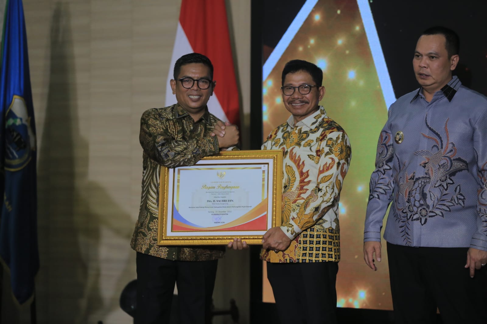 Pemerintah Kota Tangerang kembali menorehkan prestasi dengan menerima Anugerah Patuh Pajak Tahun 2025, sekaligus menjadi penghargaan ke-82 yang diraih sepanjang tahun ini. Penghargaan tersebut diterima langsung oleh Wali Kota Tangerang H. Sachrudin dari Gubernur Banten Andra Soni dalam acara Anugerah Pajak Tahun 2025 di Pendopo Gubernur Banten, KP3B Serang, Selasa malam (23/12/25).