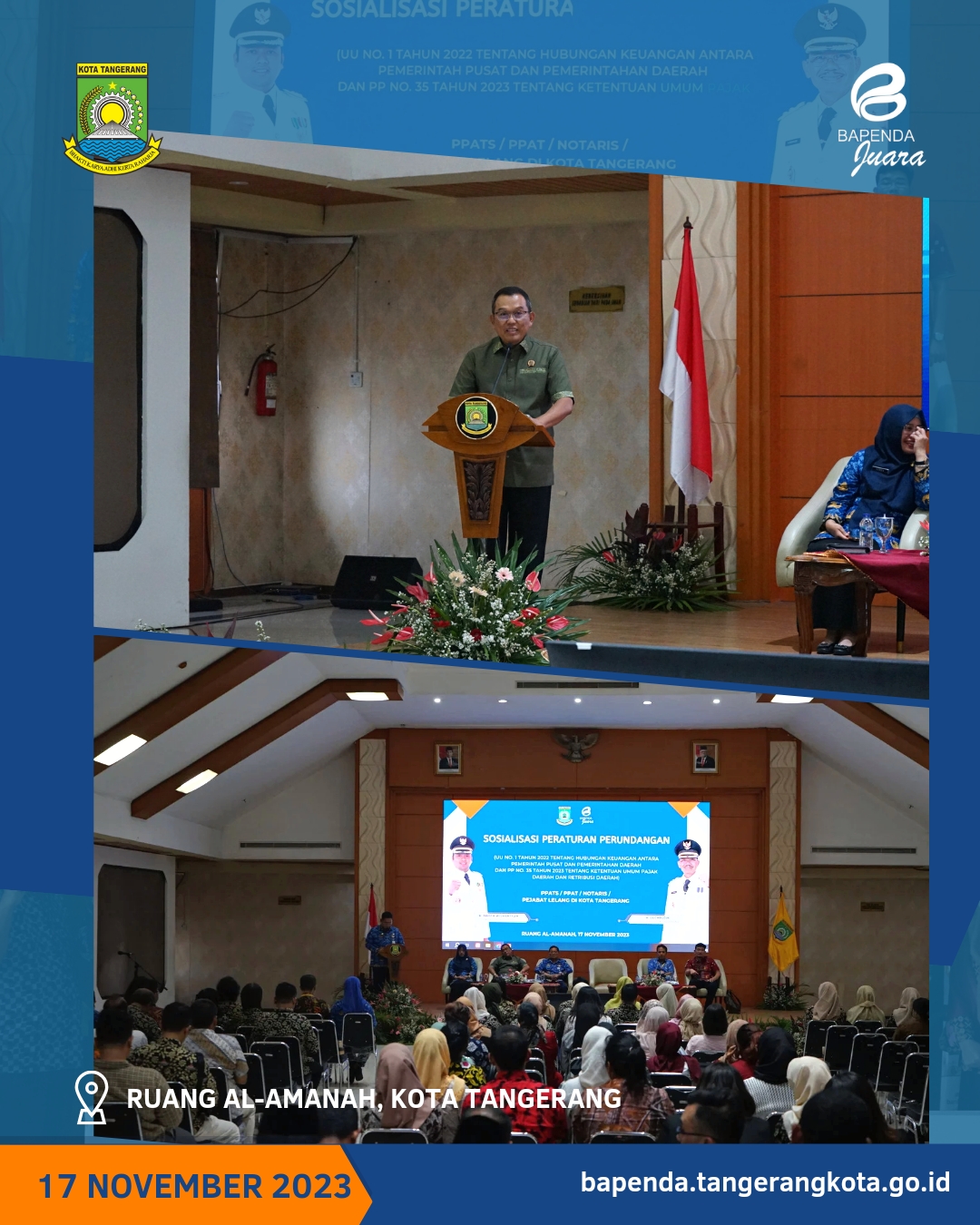 Setelah disahkannya UU No. 1 Tahun 2022 tentang Hubungan Keuangan Pemerintah Pusat dengan Pemerintahan Daerah serta PP No. 35 Tahun 2023 tentang Ketentuan Umum Pajak Daerah dan Retribusi Daerah, Pemerintah Kota Tangerang melalui Badan Pendapatan Daerah ( BAPENDA ) melakukan sosialisasi perundangan kepada PPAT/PPATS/Notaris/Pejabat Lelang di Kota Tangerang, jum'at (17/11).