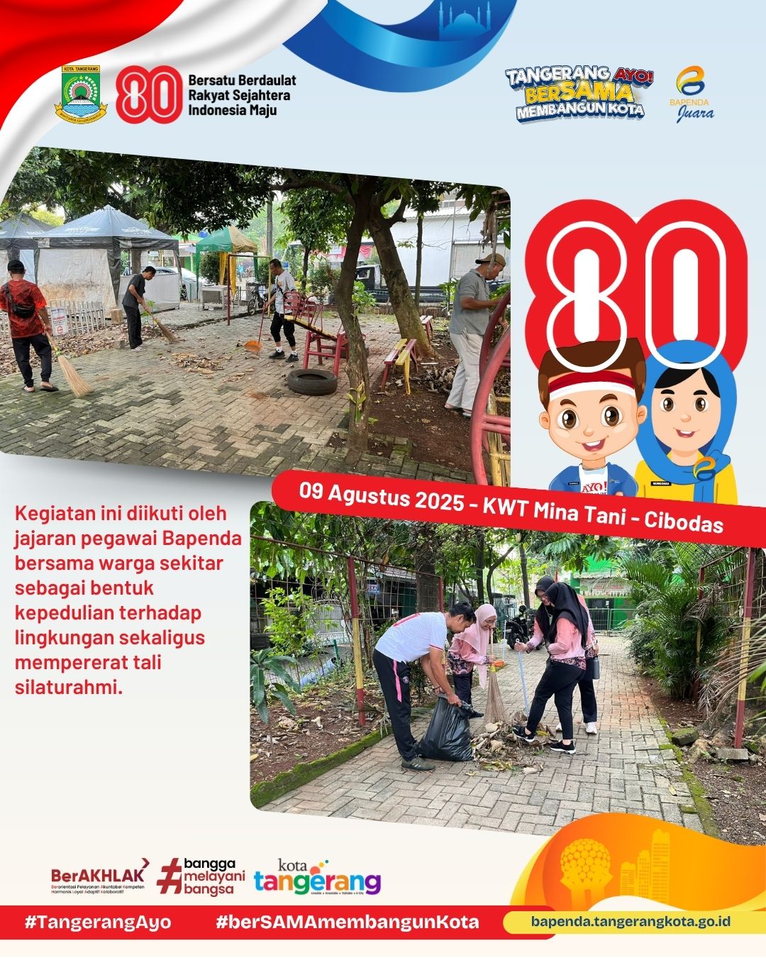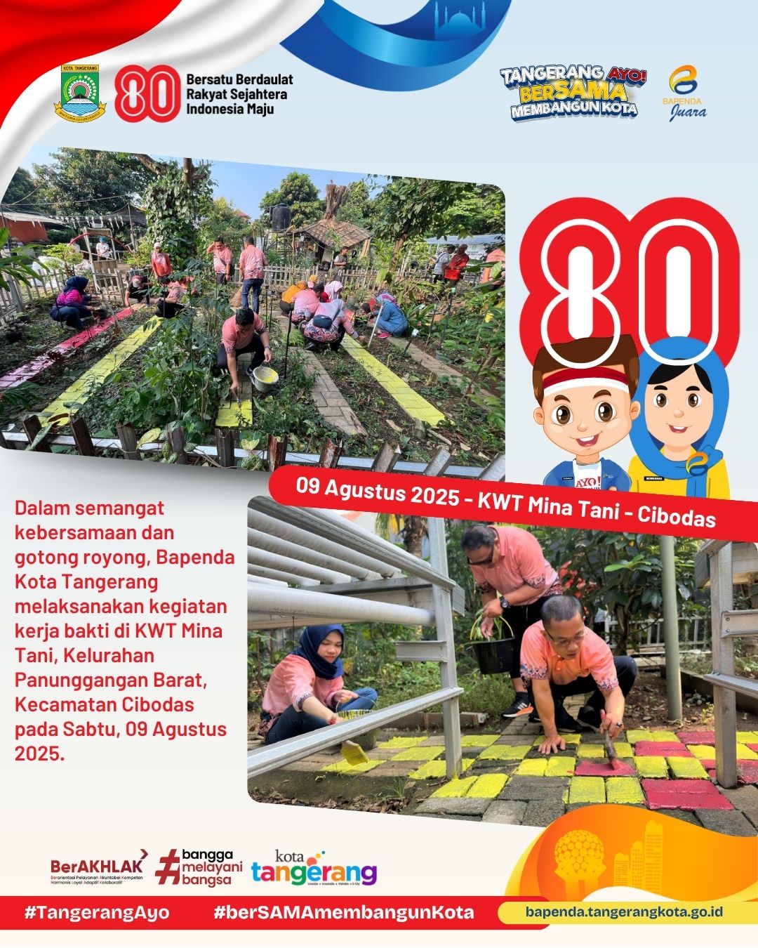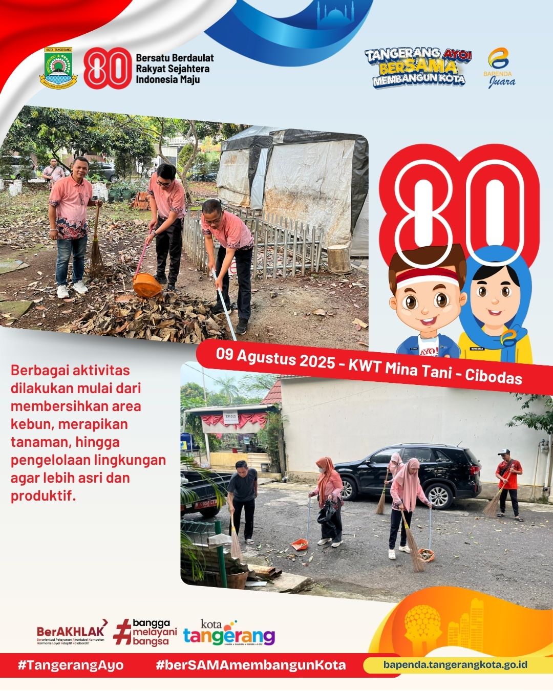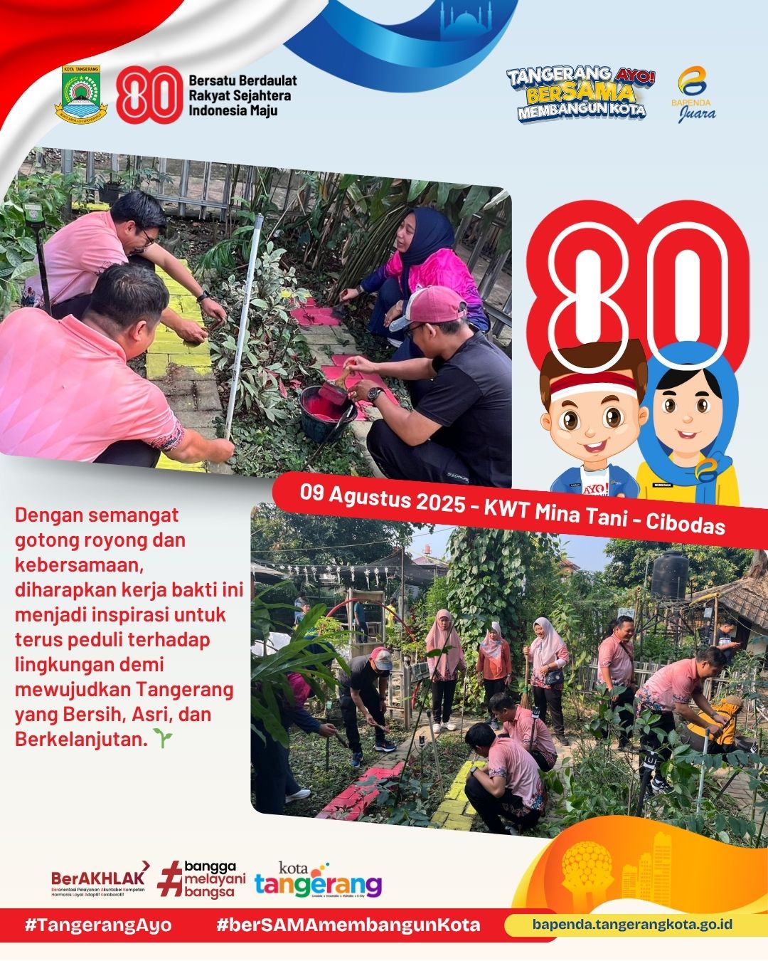 #BapendaJuara #KotaTangerang #AyoberSAMAmembangunKota #HUTRI80 #KerjaBakti #KWTMinaTani #PanungganganBarat #Cibodas